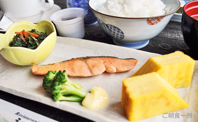 広々としたレストランでは、美味しくて栄養バランスのとれた朝食をご用意いたします。ふっくらとした北海道産ゆめぴりかのご飯が人気です。
